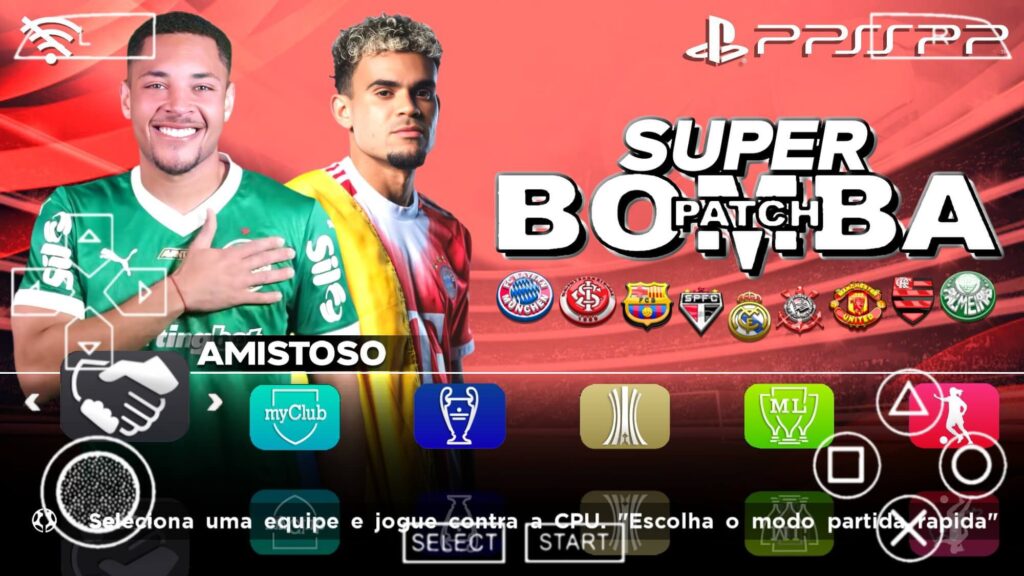 No Bomba Patch 2026 PPSSPP você pode aprender jogando primeiramente o modo amistoso, nesse modo você pode mudar a condição fisica dos jogadores, o tempo da partida, a dificuldade para que você aprenda mais rápido, e os estádios junto com o clima da partida, fora isso, você pode decidir se o jogo vai ter cena de entrada, ou se pula direto para a partida. Caso não goste, você pode tirar as prorrogações, fazendo isso, caso empate, vai direto para disputa de pênaltis. Os melhores modos de jogo estão inclusos no Bomba Patch 2026 PPSSPP, Master League e Rumo ao Estrelato, podendo fazer história com um time, ou com apenas um jogador. Você pode jogar as principais ligas do futebol mundial sem precisar da Master League e Rumo ao Estrelato, no Bomba Patch 2026 PPSSPP, você tem a opção de jogar ligas e copas separadamente. E por fim o modo treinamento, para que você aprenda a jogar da forma correta e ser tornar um jogador exepcional.