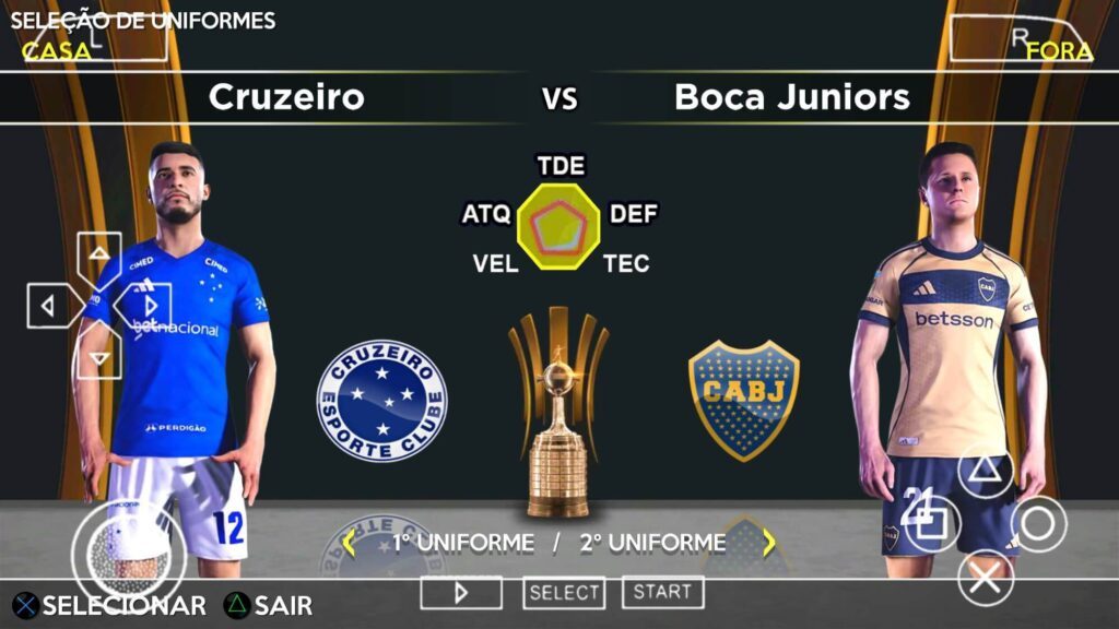 Está fantástico o novo estilo desse Efootball Pes 2026 PPSSPP, dessa vez o jogo recebeu um novo formato, pensado somente na Copa Libertadores da América e Conmebol Sudamericana. Efootball Pes 2026 PPSSPP Sul Americano é um jogo de futebol exclusivo com todas as ligas da América do Sul diretamente na Master League e no Rumo ao Estrelato, ou seja, ao invés de jogar campeonatos como Uefa Champions League, Uefa Europa League e Uefa Conference League, você disputa a Copa Libertadores da América e Conmebol Sudamericana. Não se preocupe, a Uefa Champions League pode ainda estar no jogo em formato de modo de jogo, mas fora da Master League e do Rumo ao Estrelato.